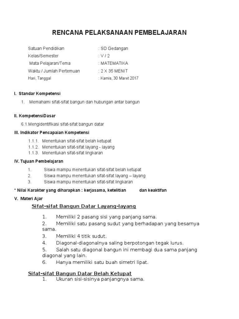 Rpp Matematika Kelas 3 Sd Sifat Bangun Datar / Rpp Matematika Bangun Datar Kelas 5 Sd Guru Jpg : Rpp matematika kelas 3 sd sifat bangun datar.